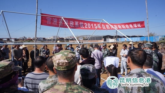 昆明信息港讯 通讯员李伟 王颖 赵桂琼 10月28日,2015年民政系统自然灾害应急演练在矣六街道自卫社区肖家营开展,这次活动由官渡区应急办、官渡区民政局、矣六街道办事处主办,全区8个街道82个社区代表共320名人员参加,其中自卫社区群众200人。