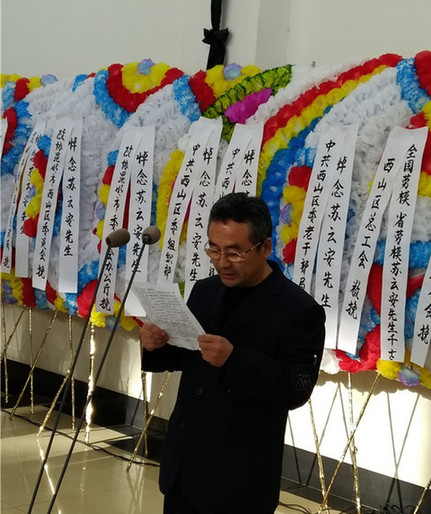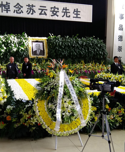 追悼会现场哀乐婉鸣,气氛凝重。云南省、昆明市、西山区部分政要、苏云安生前亲朋好友及乡邻、云安集团各项目合作伙伴,以及社会各界500余人,向苏云安遗体鞠躬致敬,与其家属握手慰问。