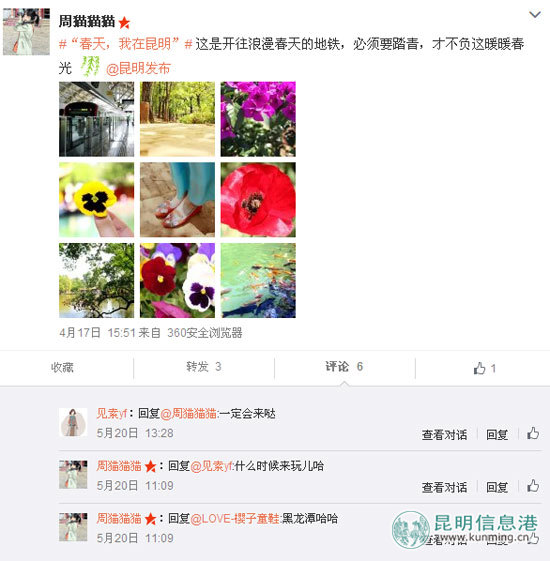 彩龙社区网友积极参与#发现昆明之美#微话题。