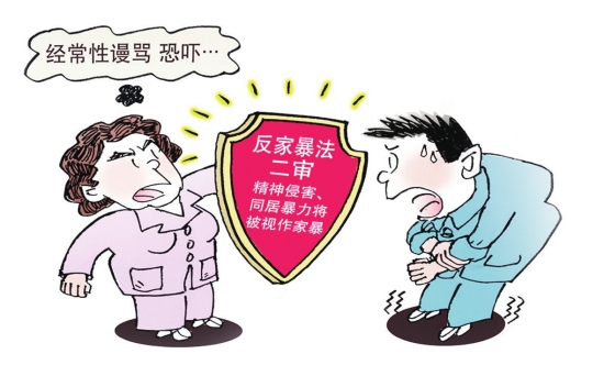 昨日,全国人大常委会开始审议反家庭暴力法二审稿草案,精神暴力首次纳入其中。
