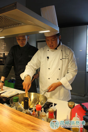 中国滇菜大师刘忠明(右) 记者孙红亮/摄