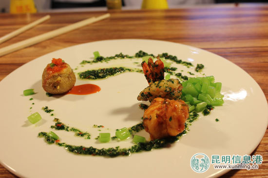菜品“椒麻大虾配焗土豆泥” 记者孙红亮/摄