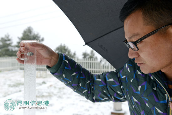 西山的雪,是从23日下午2点半开始的,杨新楼当时正在太华山气象站值班室内,监控气象数据是否传输正常。杨新楼在西山太华山气象站工作了3年,每一年的下雪天都让他赶上了,用他的话说是“和下雪有缘”。