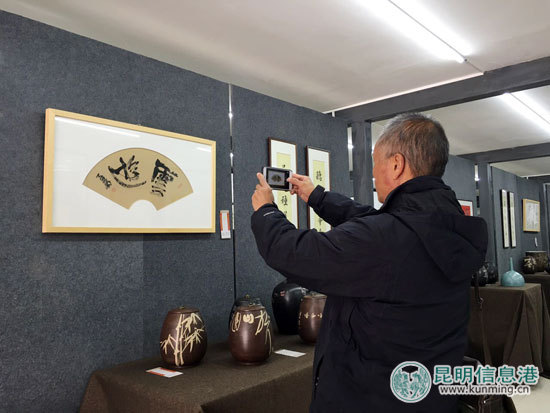 昆明信息港讯 记者王诗贻 1月28日,“书法自然 陶冶人生”乔明陶艺书法收藏展在昆明碧鸡关艺术品仓库开展,展出乔明一百件作品。其中,书法作品70件,陶艺作品30件。