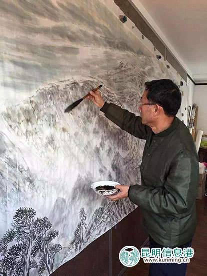 尽管十分寒冷,画展依然吸引了众多书画爱好者,其中不乏许多闻讯而至的外国人。作为云南著名画家之一,寇子皓的作品从来不缺乏赞誉和追捧,而这些天,他却像一个普通的观展者一样,混杂在人群中,细细聆听每一个人的评价和感叹,间或和人们打个招呼交流几句。