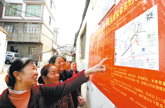 社区居民将对王家桥片区11条巷道命名进行集体讨论。记者周密/摄