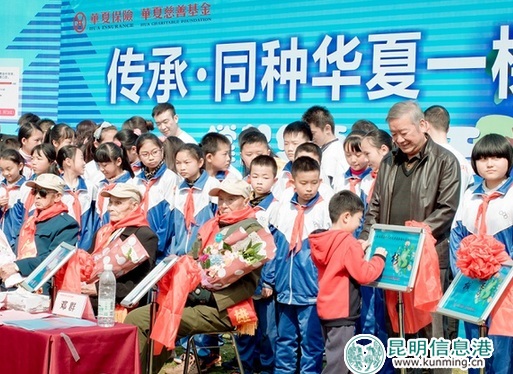 昆明信息港讯 记者孙瑞婷 3月11日,“传承·同种华夏一棵树——撑起华夏一片天”植树节特别活动在中科院昆明植物园举行,活动现场,来自云南首家“全国爱心护理工程 抗战老兵照护中心”——云南老年之家敬老院的李树林、罗佩富、肖朝青、周自祥四名抗战老兵,以及黑龙潭小学的少先队员们,通过“认养树木”的方式,共同培育起寓意新老交替、传承延续的“传承林”。