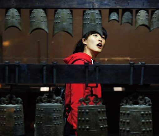 这套编钟是观众最喜爱的展品,大家围在玻璃展柜外静静观看,默想它发出的古朴乐音。