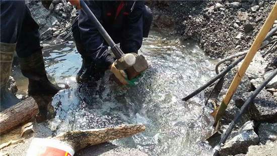 五一路上工作人员正在修复漏水点