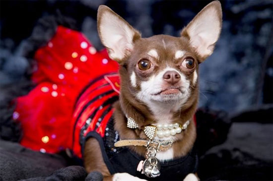 两年前,狗主人约瑟芬卡特买了这只只有手提包大小的吉娃娃,取名奎尼。打扮爱犬是她最大的爱好。养尊处优的小狗不仅有自己的裙子、外套、帽子、假发及首饰,还有私人手推车。约瑟芬在爱犬装扮上的花销甚至超过自己的,但是她认为这么做是值得的。