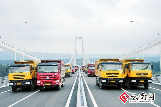 龙江特大桥是云南省首座特大跨径钢箱加劲梁悬索桥,作为云南省公路建设信息化试点项目,建设进度备受关注。4月5日,工程建设项目部对大桥进行了成桥荷载试验,标志着龙江特大桥承载力已经达到正式通车前的设计要求,今年“五一”前大桥将正式通车。