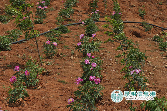 据了解,该公司主要定位是建成山地马拉松全民健身运动公园、濒危物种育苗基地等。为达到这一建设目标,公司正着力于4400 亩两面寺都市生态庄园的建设,目前已投资2亿多元对其中的1068 亩采石场进行了植被修复,并已通过验收。去年11月开始依其地势山形建成的油用牡丹基地和观赏牡丹园面积分别为125亩和100亩,其中观赏牡丹园种植从山东菏泽引进白、红、粉、紫等 9 大色系的观赏牡丹和芍药 152 个品种,此外还种植了 17 株来自山东菏泽、树龄在百年以上大规格牡丹。“这里是目前昆明地区规模最大、品种最多的牡丹观赏园,种植的观赏牡丹和芍药都是成龄苗,因此今年3月底就先后开花。 因为品种不同,现在牡丹花基本都凋谢了,只有一些晚花的黄色系牡丹仍在开花。”负责牡丹种植项目的杨永根说。