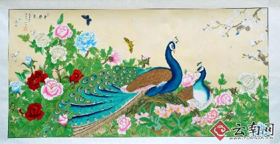 《孔雀》已不仅仅只是画家们的专注,来自丽江华坪县的肢残人士李虹毅的绘画作品《孔雀》也达到了一定的写意。这位时下以国画为主的李虹毅,开始学画始于2012年,当时她无意中在电视里看到了京剧《穆桂英挂帅》,被其中一句‘谁说女子不如男”的台词深深震撼,让她一时间对喜欢的故事做一个创作有了亢奋的灵感和冲劲。 在创作了这幅《谁说女子不如男》后,一直悬挂在自己房间最显眼的位置,当自己感到沮丧时会看一看、想一想,用穆桂英的精神鼓励自己勇往直前,给自己不停的充电加油,让自己没有理由退缩和迷茫。