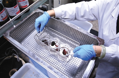 三份小龙虾样本经过超声波清洗后,溶液均不同程度浑浊。