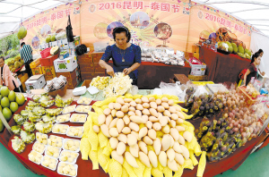 开幕式现场,泰王国驻昆总领事鹏普汪·披塔亚介绍,举办泰国节,旨在搭建泰国与云南贸易文化交流的重要平台,每一届泰国节都得到了昆明市民的热烈反响。产品方面,参加今年泰国节展出的产品,都是经过精心挑选的,许多产品都是不容易在中国购买到的,包括化妆品、服饰、SPA产品、家居装饰品。除了选购泰国美食产品外,还可以品尝10家在昆泰国餐厅带来的纯正傣味美食。旅游方面,2014年整个中国市场去到泰国游客数量有400多万人次,2015年增长到750万人次,其中云南有50万人次。自驾车方面,从泰国清孔岸统计,2015年有6万多人次选择从云南出境自驾前往泰国。未来,在云南省东南亚南亚经贸合作发展联合会和云南省东南亚南亚产业发展促进会的推动下,在各方的大力支持下,泰国节将成为促进超越中泰正式建交40余年的源远流长的中泰友好关系更加紧密的文化纽带。