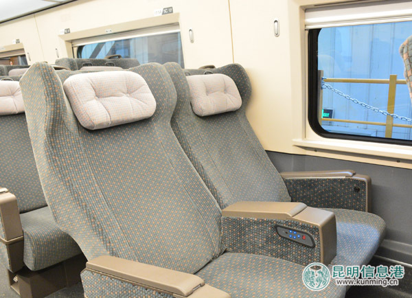 一等座设液晶显示频,扶手处有耳机插口,看视频时可自主调节音量。记者孙瑞婷/摄
