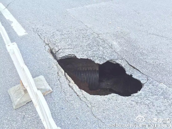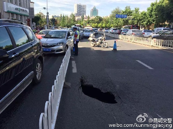 昆明信息港讯 8日上午,记者从昆明交警获悉,西昌路南向北云大医院对面路段,机动车道道路发生塌陷。辖区交警已封闭险情道路,三个车道只留有一个车道保持通行。受此影响,现在西昌路由南向北、大观路、新闻路、云大医院路段拥堵。目前,修复工作还在继续,险情还没有排除,请有条件的驾驶员避开拥挤路段通行。