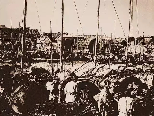 △1900年的篆塘码头:大小篷船、双单彩船和小拔船等各种船只云集于此,成为昆明最繁忙的水运码头。