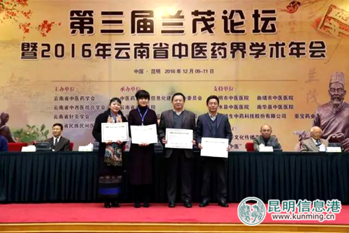 昆明信息港讯 记者纳娅 12月10日,“第三届兰茂论坛暨2016年云南省中医药界学术年会”在昆明隆重开幕。来自全省中医药行业的领导、专家、医师、学生、企业家、媒体共400余人参加此次盛会。论坛由云南省中医药学会、云南省中西医结合学会、云南省针灸学会、云南省民族民间医药学会联合主办,中医药文化与信息化建设专业委员会、 云南省中医医院、云南康创生物医药健康产业科创园承办,云南圣佑物联网技术有限公司、云南凯旋利集团协办。