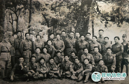 捐赠照片之一。鲁道源将军(中间大树边着将军服者)与将士们在一起