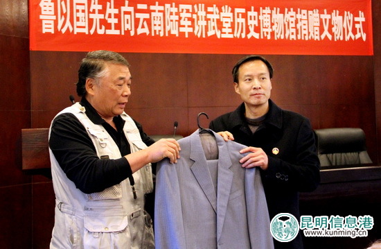 鲁以国向云南陆军讲武堂历史博物馆捐赠鲁道源将军西装一套