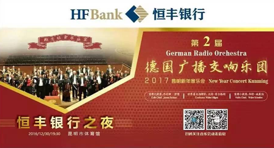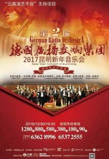 昆明信息港讯 记者胡瑾 记者获悉,2017昆明新年音乐会德国广播交响乐团专场新年音乐会将于12月30日19点30分在昆明市体育馆举行,为春城人民以及交响乐喜好者带来的一次福利。据了解,此次音乐盛宴是恒丰银行独家冠名,而德国广播交响乐团是被誉为欧洲的最牛乐团之一。在这样一个有点寒冷的冬天,听一场浪漫的交响乐,优雅的释放心灵吧。