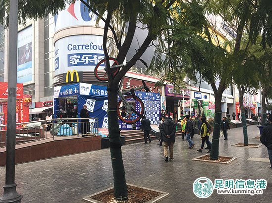 对此,昆明步行街管理办公室相关负责人张健介绍,今年1月起,步行街内骑行、停放单车的现象逐渐增多,原来为了方便残疾人通行的通道,被不少市民当成骑车进步行街的通道。为了保持步行街的有序,管理方增加了4名工作人员专门管理乱停、乱放的现象。“步行街禁止机动车、非机动车驶入和停放,希望广大骑行者将车停在步行街外。”张健再次提醒。
