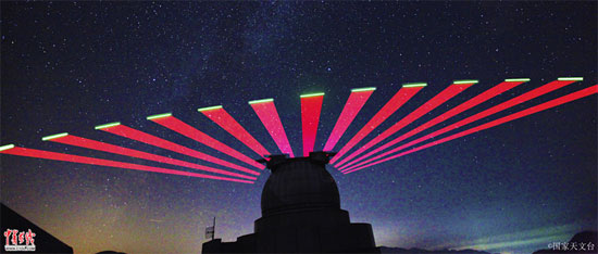兴隆观测站跟踪“墨子号”量子卫星的实景拍摄。中国科学院供图。