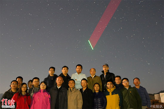 部分在轨测试科研人员与过境的“墨子号”合影。中国科学院供图。