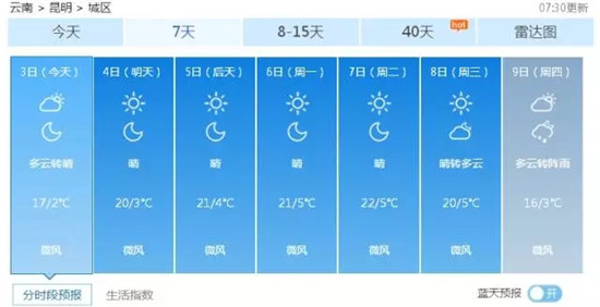 而一年后的今天,昆明竟然是艳阳高照过几天最高温度达22℃!
