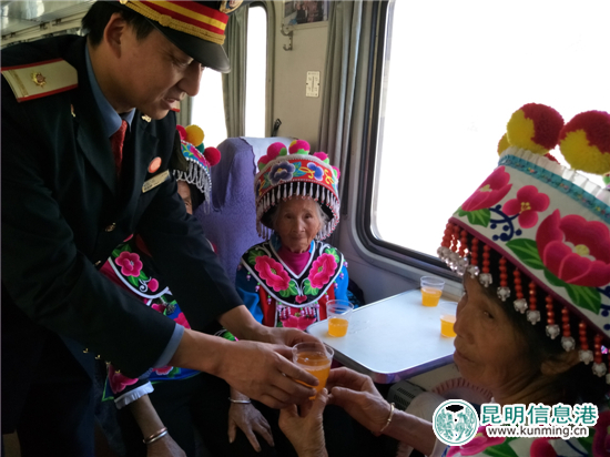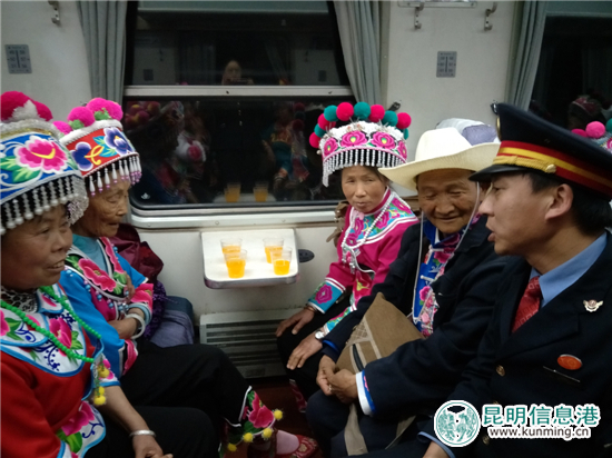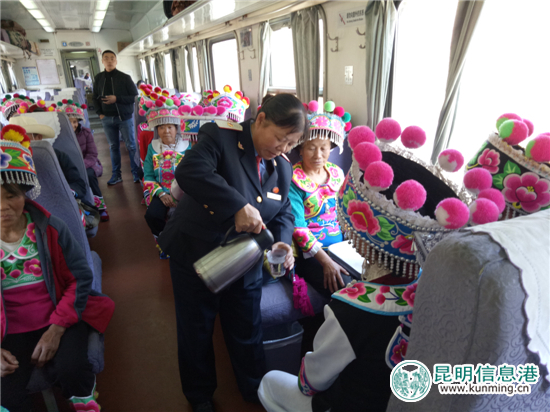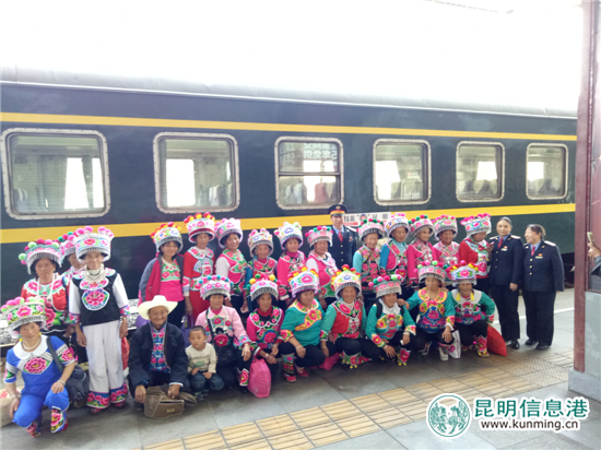 2月18日,楚雄州禄丰县的20多名彝族群众乘坐6162/1次列车去四川攀枝花旅游。张伟明 杨兆祥/供图
