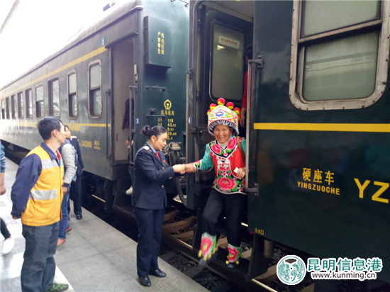 民族旅客到站下车。张伟明 杨兆祥/供图