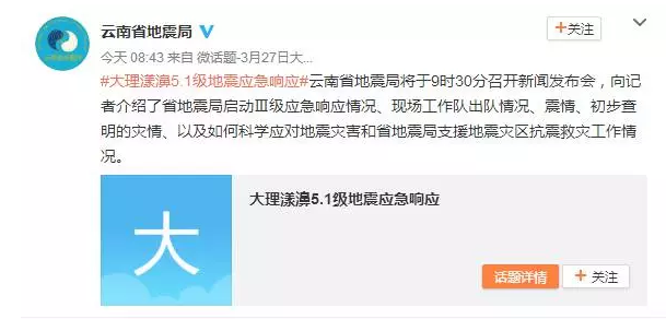 早上9点30份,云南省地震局召开新闻发布会,发布关于此次地震的相关消息。