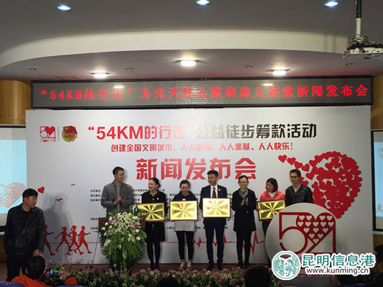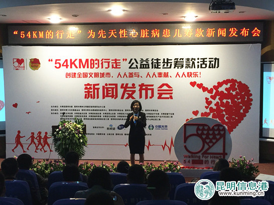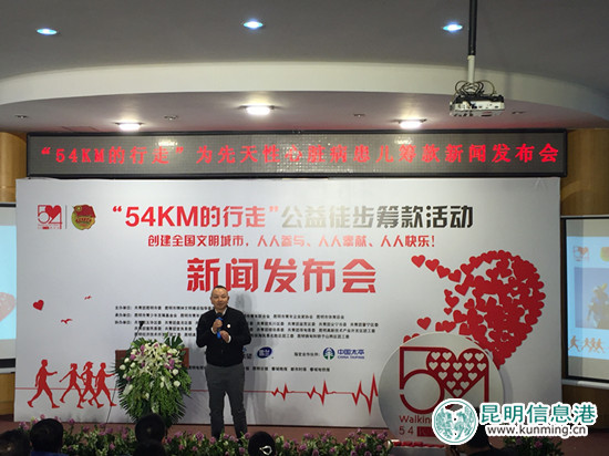 昆明信息港讯 记者张薇 3月30日,由共青团昆明市委、昆明市精神文明办公室主办的“54km的行走”公益徒步筹款启动仪式在昆明青少年活动中心科技宫举行。活动所筹善款将全部用于“我懂你的心”项目,为昆明市贫困先天性心脏病患儿筹集免费体检和医疗救助的善款。