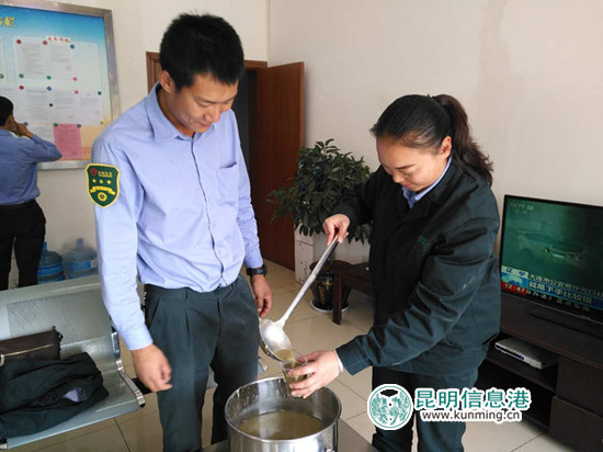 11日下午,天气正当炎热,1车队的工作人员将绿豆汤送到刚刚回到车场的驾驶员手中。“你们工作辛苦啦!快喝一碗绿豆汤解解热。”一句贴心的问候,让驾驶员感受到了别样的清凉。据悉,天气炎热期间,1车队都将坚持为一线员工做好防暑降温工作,使员工有充沛的精力服务好乘客。