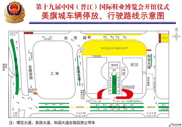 博览会期间,交警部门将对美旗城周边路段进行交通管制。长兴路与晋宁路交叉路口至博览大道美旗城路段,车流、人流量大,请途经该路段的车辆减速慢行,注意避让行人,文明出行。