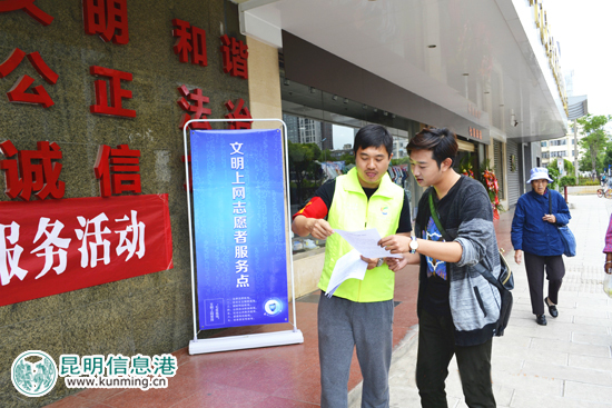 此次志愿服务活动作为争做中国好网民系列宣传活动之一,10多名来自昆明各个领域的网友参与到当天的志愿服务中,号召市民提升网络素养,为维护绿色网络环境贡献自己的力量。