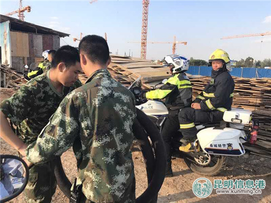 获悉情况后,正在附近执勤的昆明市公安局支队交警八大队骑警立即驱车赶赴现场,协同村民、消防官兵开展扑火,经过警民携手处置,到当天晚上20时许,险情消除。