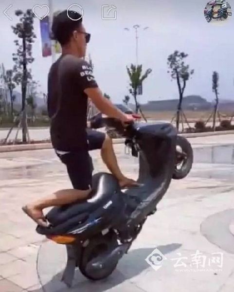 随后,记者从某直播软件上查询到了这群人,改装摩托车后在公路上玩特技的视频。在视频中,一戴墨镜的男子故意让在行驶过程中的摩托车前轮悬在空中,仅后轮着地,有时还单膝跪在座椅上,通过自拍杆将视频传到网络上,这一危险驾驶行为令人堪忧。