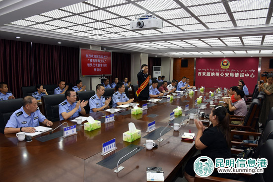 西双版纳州委宣传部常务副部长段金华,州公安局党委副书记、常务副局长徐云,副局长李立新、彭民,以及局机关各部门主要负责人参会,分享了这一光荣时刻。