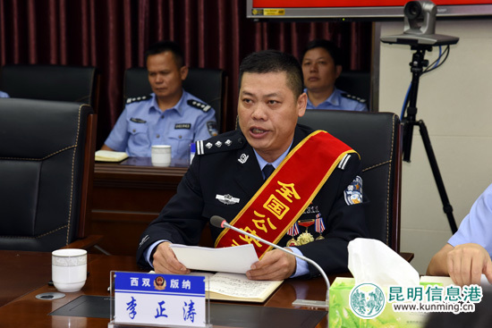昆明信息港讯 记者江枫 通讯员谢丹阳 5月19日,国务院授予西双版纳州公安局禁毒支队“模范禁毒支队”称号,禁毒支队支队长李正涛等人还参加了公安系统英雄模范立功集体先进事迹报告团赴全国巡回报告。6月12日下午,西双版纳州公安局召开座谈会,热烈欢迎领奖代表和报告团成员归来。