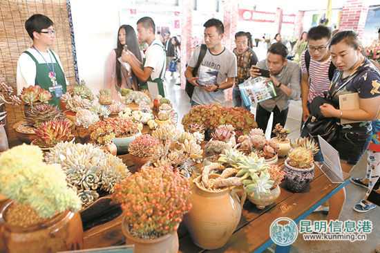 昨日开幕的第十八届中国昆明国际花卉展上,参展商最多、人气最旺、交易最活跃的莫过于多肉植物展区。据省花产联介绍,本届花展共有省内外31家多肉植物企业,租用49个展位,向国内外客商和市民展示100多个新奇特多肉植物品种。