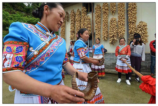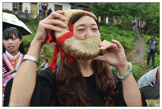 远来的客人必须喝过羊角中的酒才能进寨 刘光华/摄
