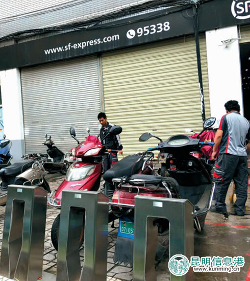 昨天,由于桩点上停满了顺丰速运的电动车,昆明公共自行车第一次投放并未成功。等到顺丰速运快递员骑电动车外出送快递时,才投放了几辆。