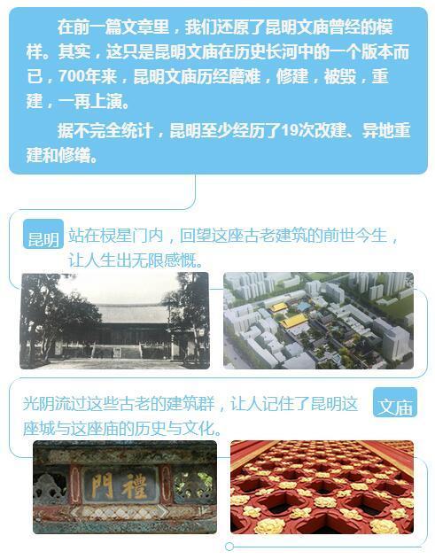 据悉,由于昆明文庙距离现在历史久远,很多资料并不完善,他们只能根据当年飞虎楼留下的资料,以及梁思成留下的《未完成的测绘图》等大量历史资料,找寻老照片,再用三维立体扫描合成技术来恢复文庙当年的样子,“当时仅是修改图纸,大的改动就有4次,而细微之处的调整就上百次了。”