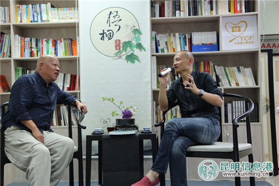 昆明信息港讯 记者王诗贻 由云南大益爱心基金会主办,大益文学院、大益茶道院协办,第三期“梧桐茶会”于9月15日晚在昆明举办。著名诗人于坚与大益文学院院长陈鹏展开对话,一起寻找“遗失的故乡”。