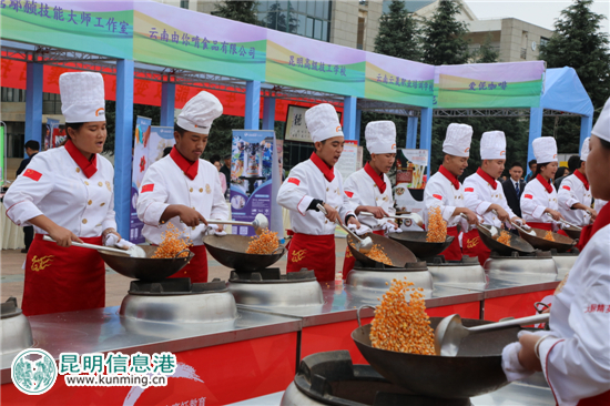 昆明信息港讯 记者杨雁 灶台一字摆开,各位身着白色厨师服,头戴厨师帽的参赛选手们娴熟地翻簸着锅,菜在锅中欢快地“跳跃”;而在滇味拼盘展示台上,黄瓜、葫萝卜等被切成五颜六色的片状,不一会儿就被参赛厨师摆放出一只精美的蝴蝶造型滇味凉拼……这是今天在昆明学院旅游学院举行的2017年云南省职业技能大赛暨昆明地区小微企业创业创新技能大赛中式烹调师选拔赛中的一幕。最终,来自昆明的王勇、丽江的李云、文山的杨志坤分获本次中式烹调师选拔赛前一、二、三名的好成绩。