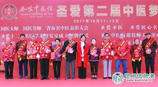 昆明信息港讯 记者马文焘 近日,圣爱中医馆第二届中医梦圣会在昆明举行,300余名老中医专家、社会知名人士和中医药医务工作者出席活动。当天,现场开展了国医大师、国医名师、省市名中医、圣爱圣医、圣爱匠心名医表彰大会,与此同时,圣爱名医学术研究室授牌成立,并启动了第十届中医膏方养生节暨名医论道“膏方养生保健康”活动。