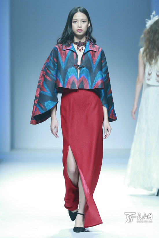 当天,三位全国十佳服装设计师孙秀琴、程应奋、陶陶,以及新疆设计师迪拉娜 · 扎克尔凭借对艾德莱斯的专注研究创作,带来了一系列融合设计与市场、民族与世界的原创作品。在模特的演绎下,走出天山的艾德莱斯时装为本届中国国际时装周带来了美丽生动的新疆表情。