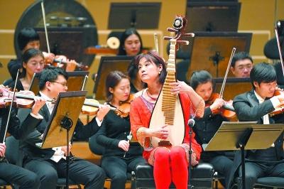 琵琶演奏家吴蛮与国家大剧院管弦乐团联合演出。王小京摄